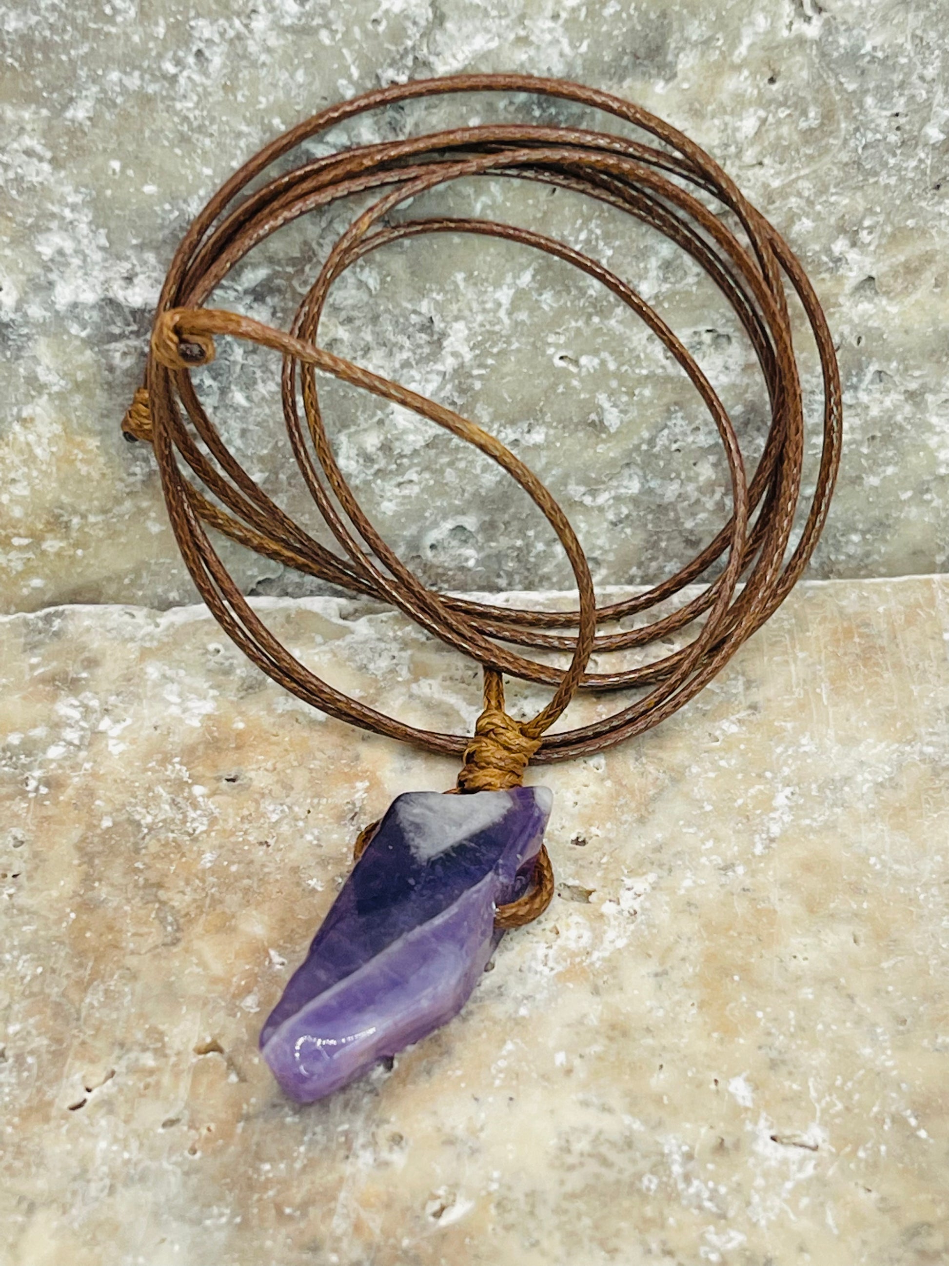 These beautiful necklaces measure 18" in length, with the braided cotton wax cord extending to 30+ inches. Each stone measures .75-1.5".